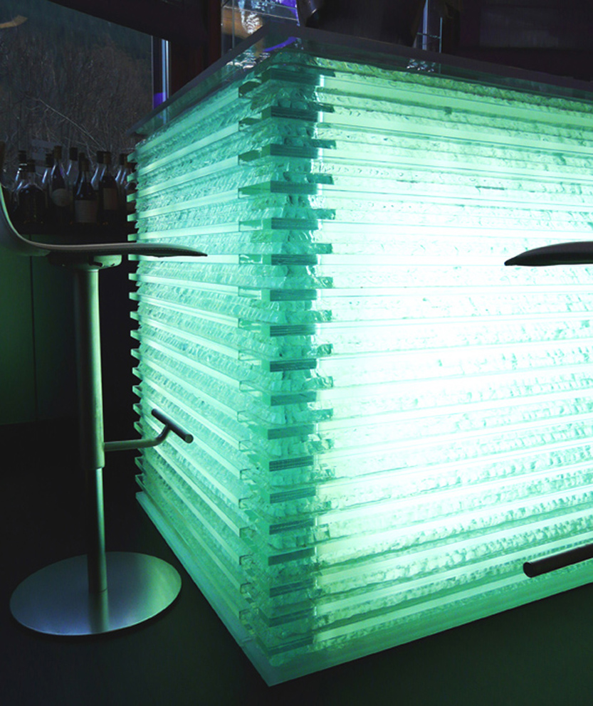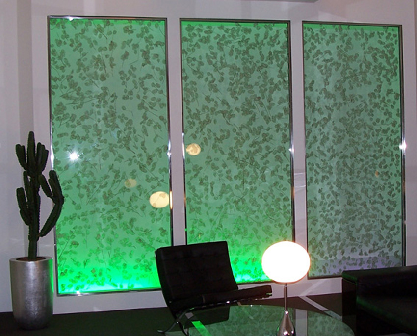 Le verre se décline en une multitude de formes et de couleurs, allant du verre dépoli au verre de couleur, en passant par le verre laqué, sérigraphié ou avec insertion.