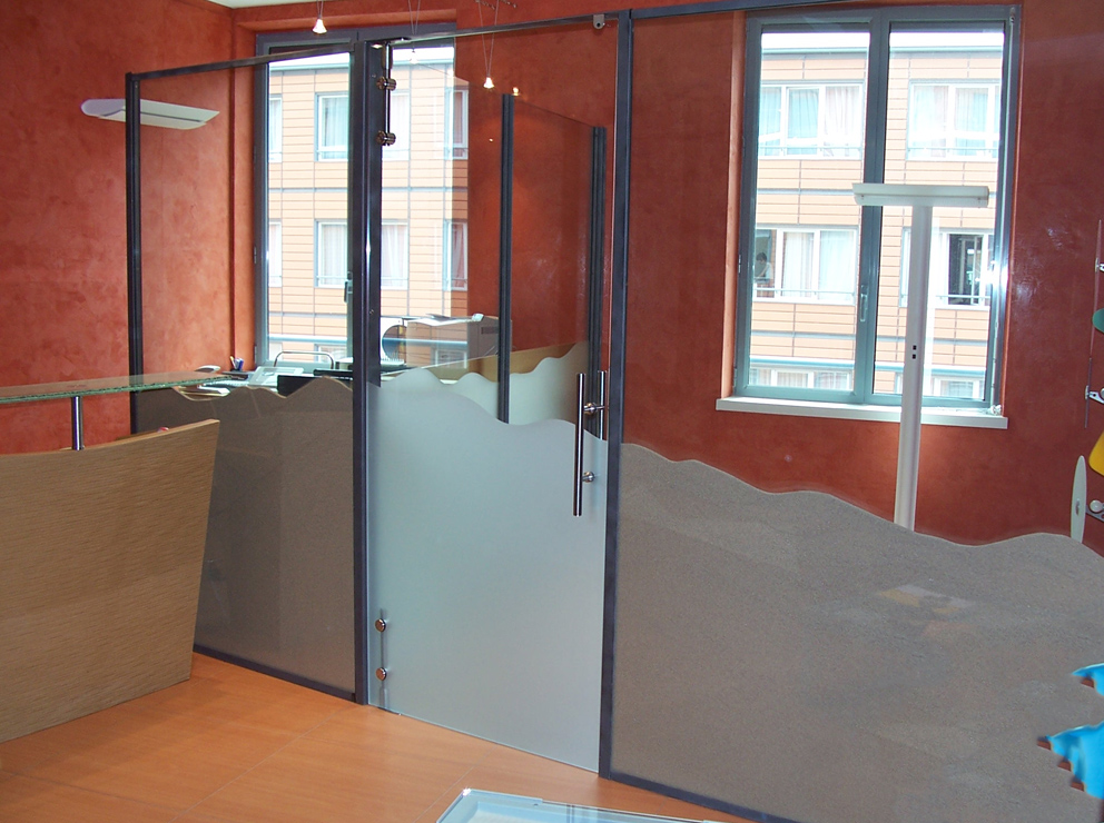 Des portes en verre, dont la fonction est d’apporter une touche décorative, sont proposées pour des espaces tels que les spas, les hammams, les bureaux et les salles de bain.